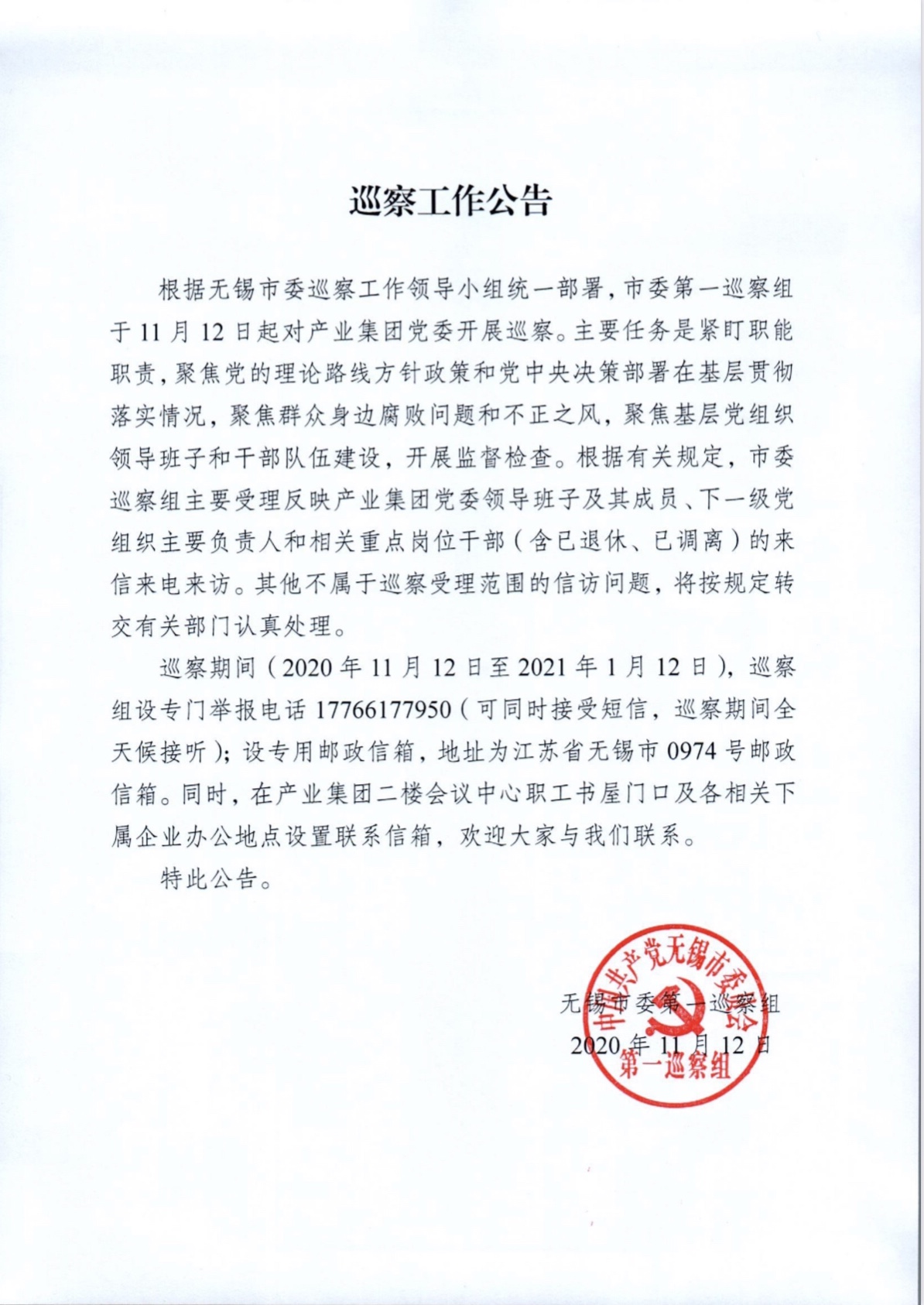 巡察工作公告